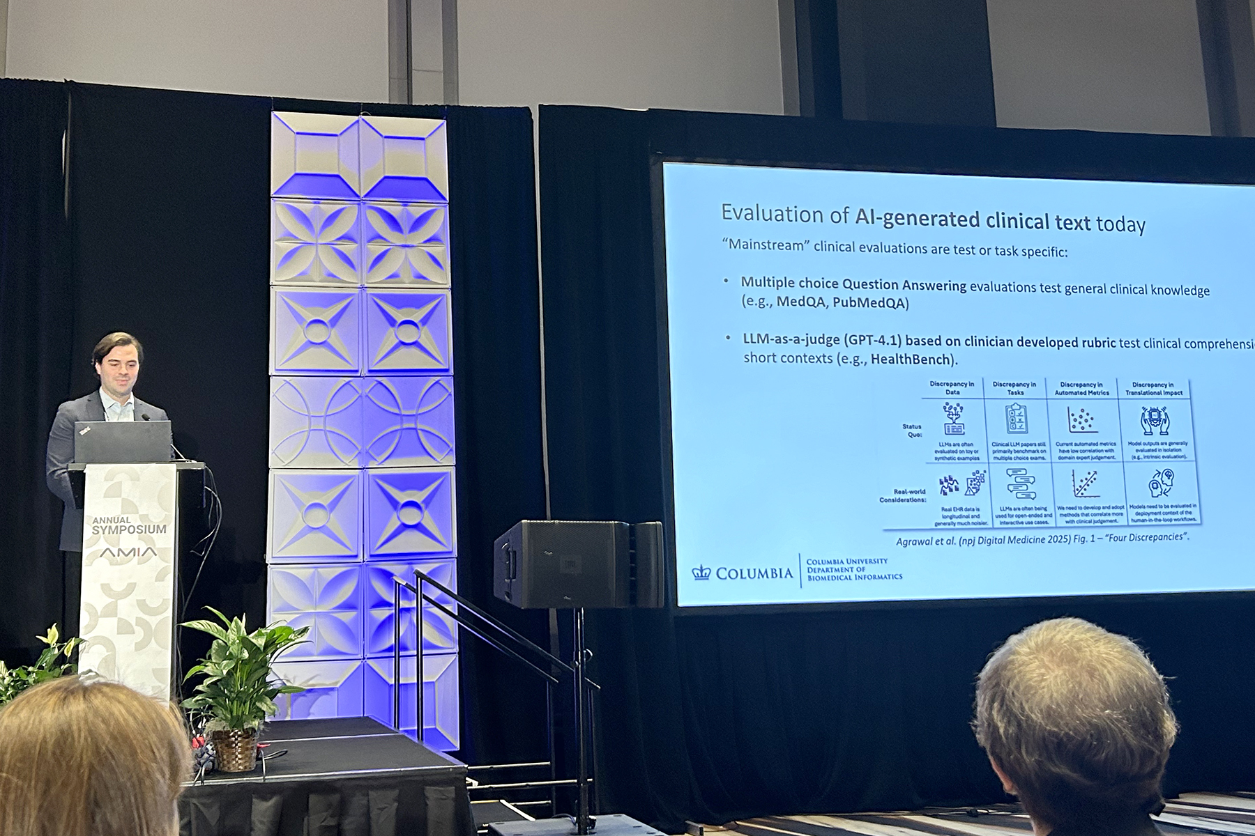 Chunhua Weng, Professor of Biomedical Informatics at Columbia University, received the prestigious Donald A.B. Lindberg Award for Innovation in Informatics by the American Medical Informatics Association (AMIA). This honor, the 5th such one for the department, including the third in the last three years, was just one highlight of a busy AMIA Symposium week.